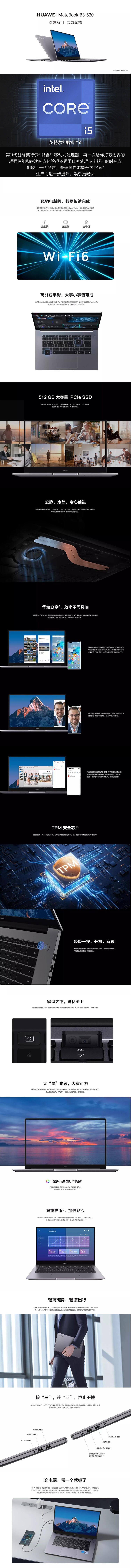 商品名稱:華為(HUAWEI)MateBook B3-520(BDZ-WFH9A)15.6英寸筆記本電腦 i5-1135G7 16GB 512GB 集顯 win10-H 指紋電源二合一 三年保修服務