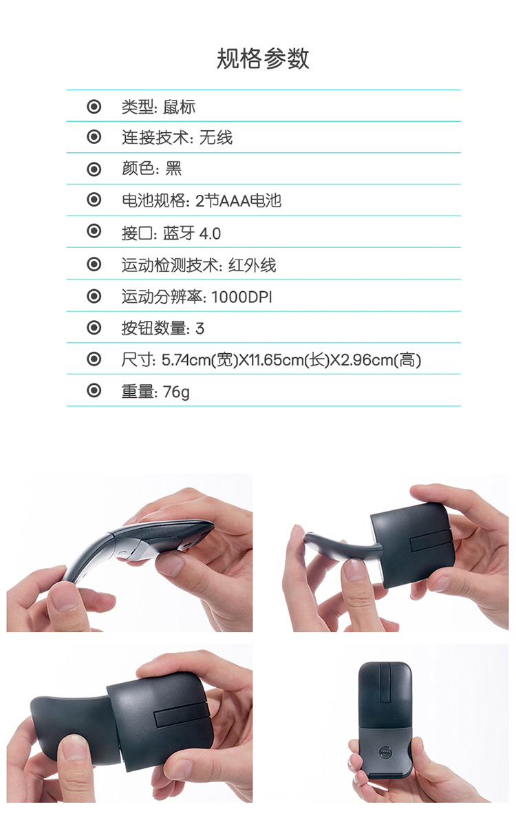 商品名稱:戴爾(DELL)WM615 無線鼠標 鼠標無線 藍牙鼠標 折疊鼠標 家用/商務/辦公/筆記本/臺式機 無線鼠標(黑色)