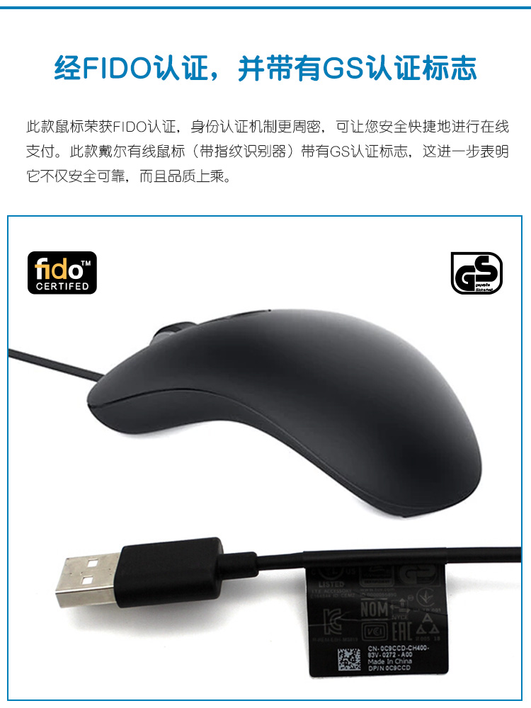 商品名稱:戴爾(DELL)MS819 鼠標有線 指紋識別鼠標 有線鼠標 筆記本/臺式機辦公 鼠標