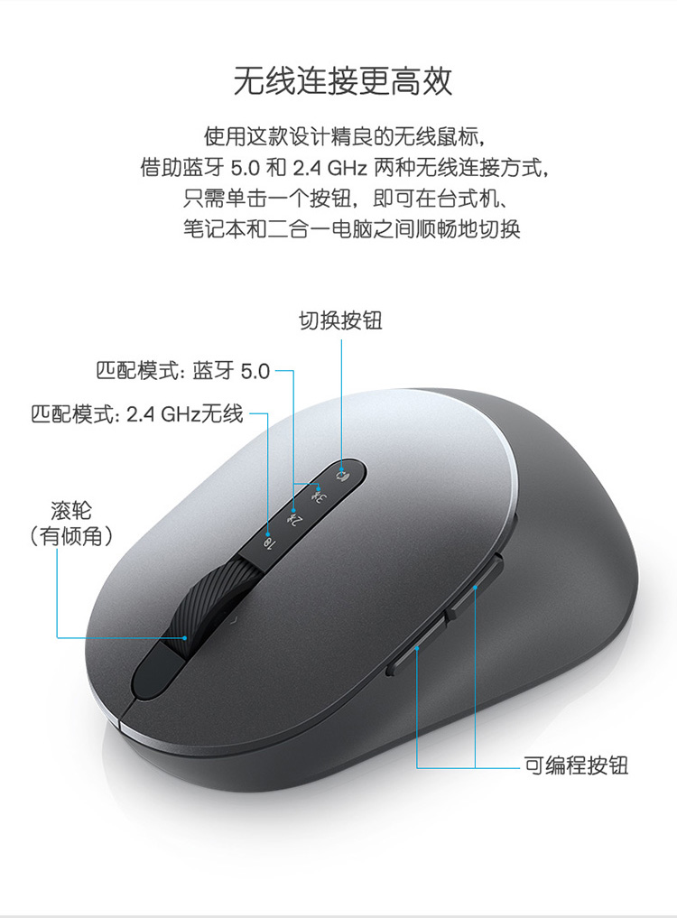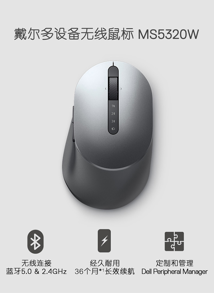 戴爾(DELL)MS5320W 無線鼠標 藍牙鼠標 藍牙5.0&2.4GHz雙模連接 3年續(xù)航 3年廠商保修 鼠標 泰坦灰