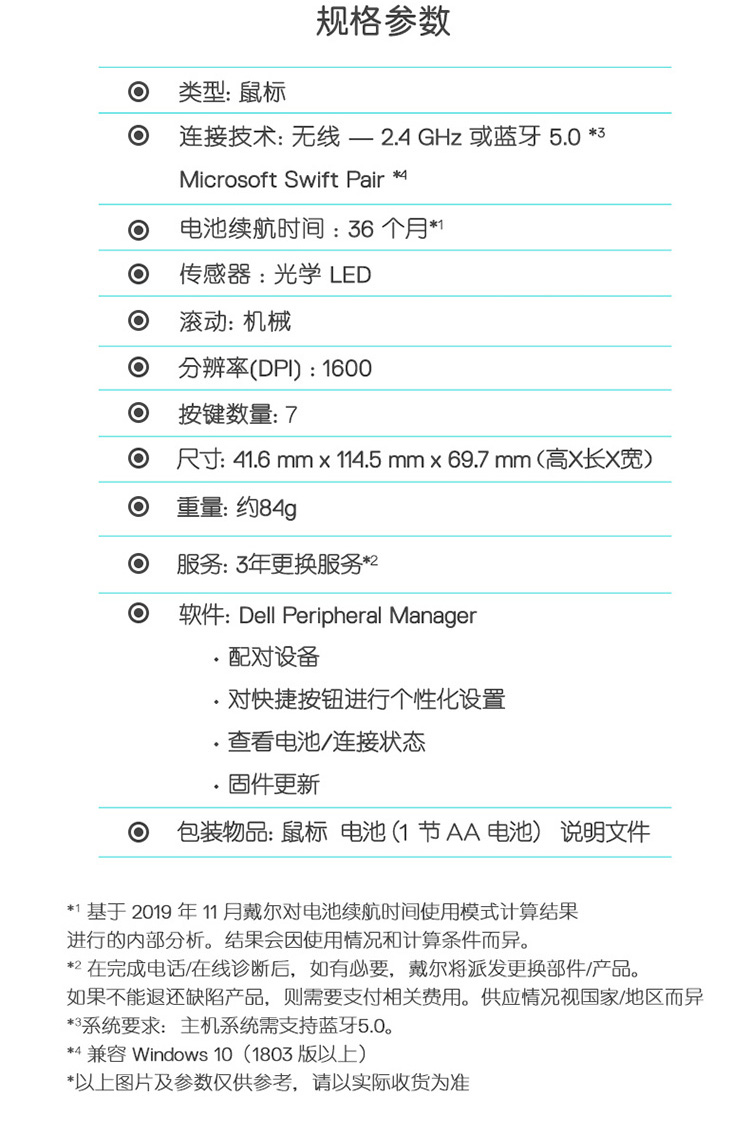 商品名稱:戴爾(DELL)MS5320W 無線鼠標 藍牙鼠標 藍牙5.0&2.4GHz雙模連接 3年續(xù)航 3年廠商保修 鼠標 泰坦灰