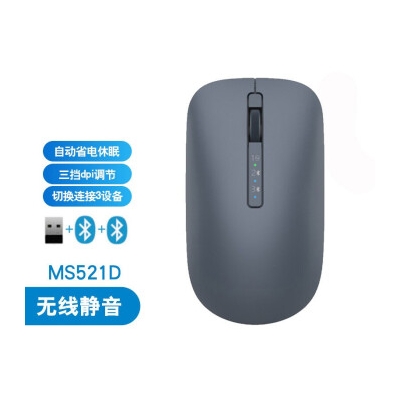 戴爾(DELL)MS521D無線藍牙雙模鼠標輕薄無線輕音鼠標商務辦公無線鼠標 戴記嚴選月夜灰藍MS521D無線+藍牙雙模靜音鼠標