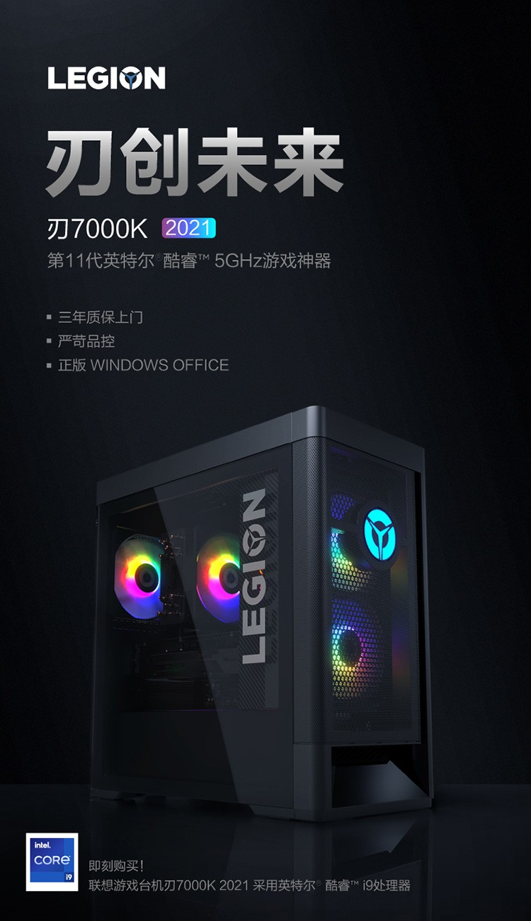 商品名稱:聯想(Lenovo)拯救者刃7000K 2021電腦主機(I9-11900F/16G/512GSSD+1TB/GTX1030 4G獨顯/23.8顯示器)