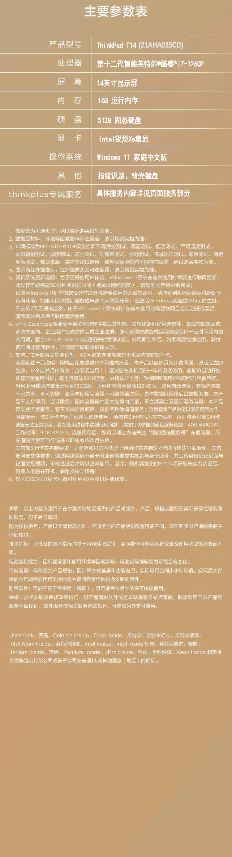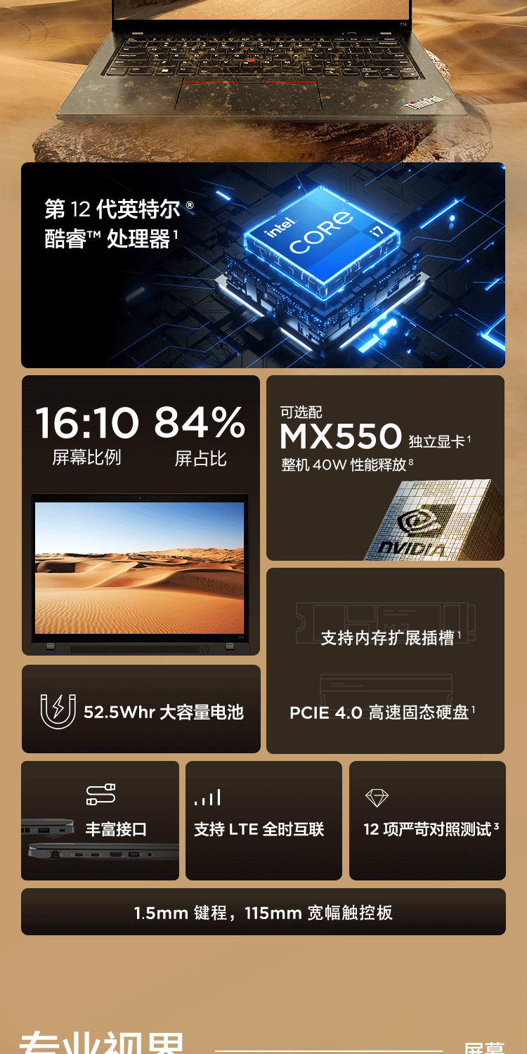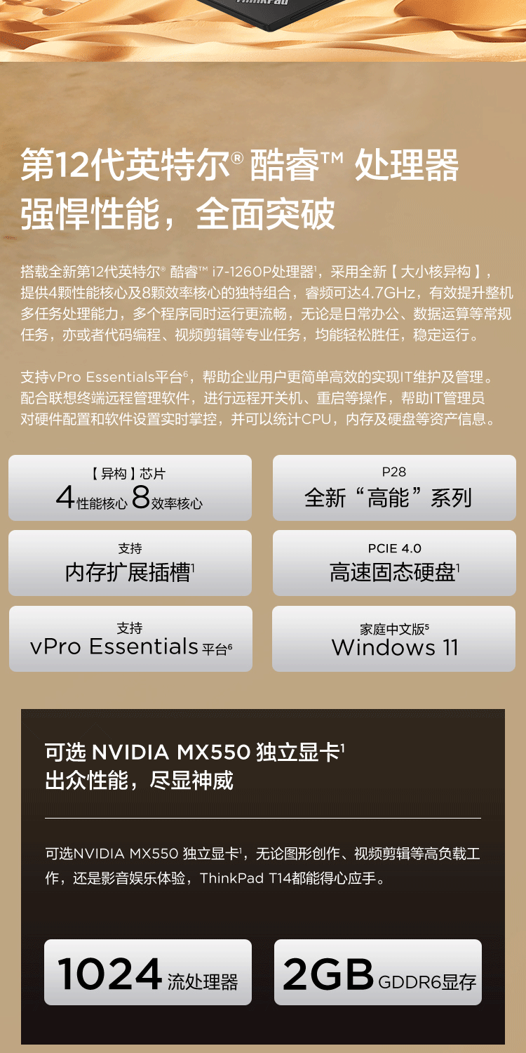 商品名稱:聯想ThinkPad T14(15CD) 2022年 14英寸高性能輕薄商務筆記本 i7-1260P 16G 512G 銳炬顯卡 藍牙 4G版