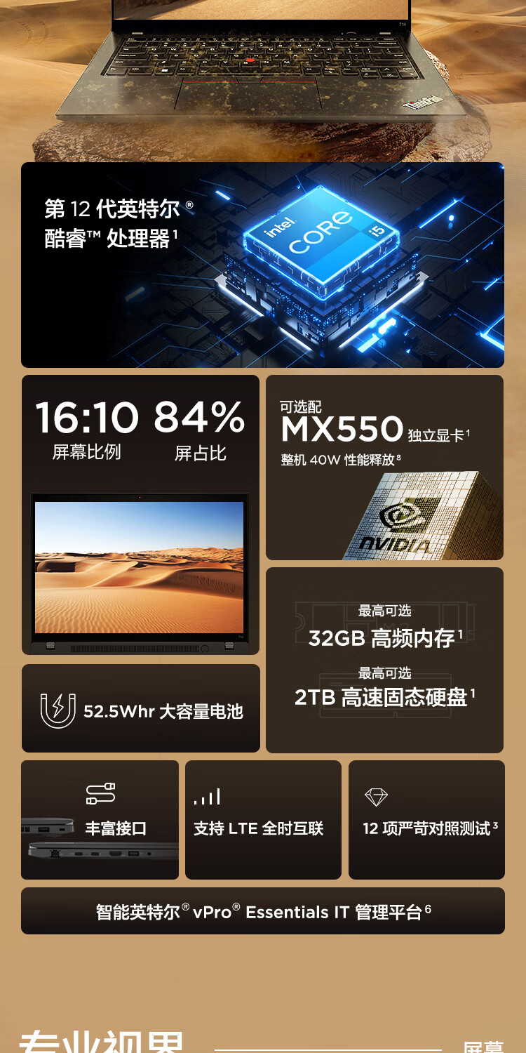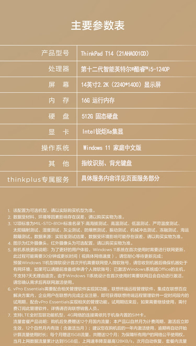 商品名稱:聯(lián)想ThinkPad T14 2022(01CD)14英寸高性能輕薄商務(wù)筆記本 酷睿版12代i5-1240P 16G 512G 2.2K 銳炬顯卡 4G版
